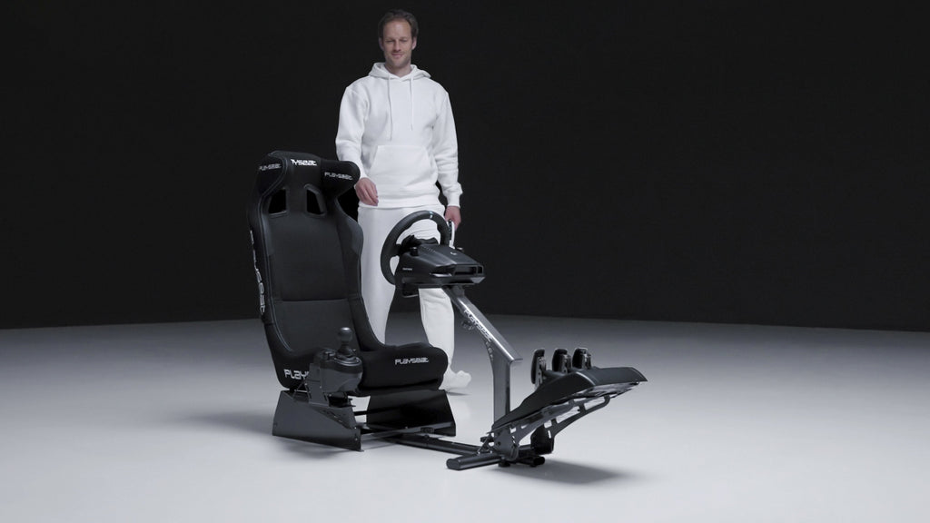 El Playseat® Evolution PRO tiene un sistema plegable único y patentado para un almacenamiento fácil y rápido. Una vez colapsado, el asiento de carreras se puede colocar debajo de cualquier mesa o escritorio normal”.