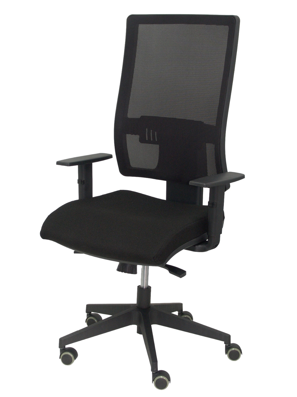 PIQUERAS Y CRESPO Modelo Horna - Silla de oficina ergonómica con mecanismo sincro y regulable en altura - Respaldo alto de malla transpirable y asiento tapizado en tejido BALI color negro.