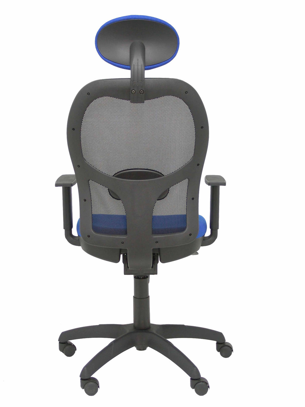 PIQUERAS Y CRESPO Modelo Jorquera - Silla de oficina ergonómica con mecanismo sincro, brazos regulables y ajustable en altura Respaldo de malla transpirable en color negro y asiento tapizados en tejido BALI color azul (CON CABECERO)