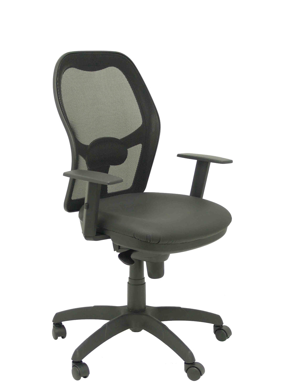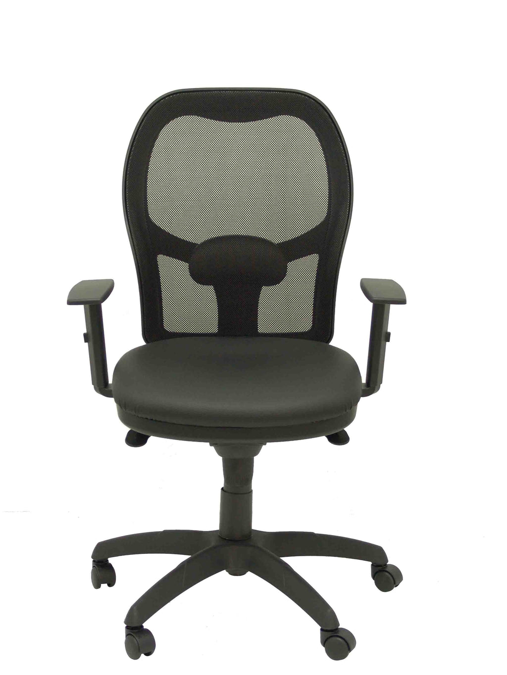 PIQUERAS Y CRESPO Modelo Jorquera - Silla de oficina ergonómica con mecanismo sincro, brazos regulables y ajustable en altura Respaldo de malla transpirable en color negro y asiento tapizados en tejido SIMILPIEL color negro