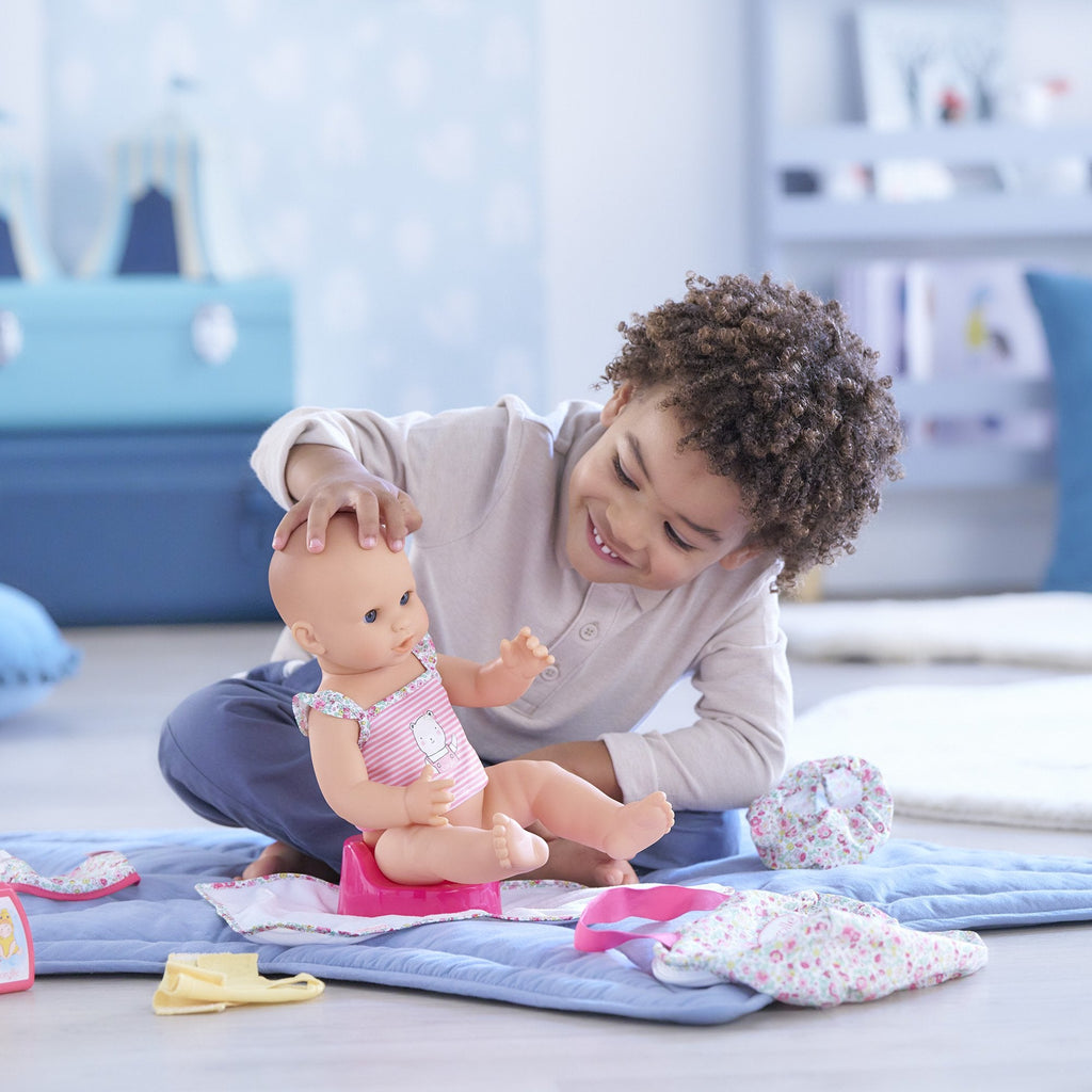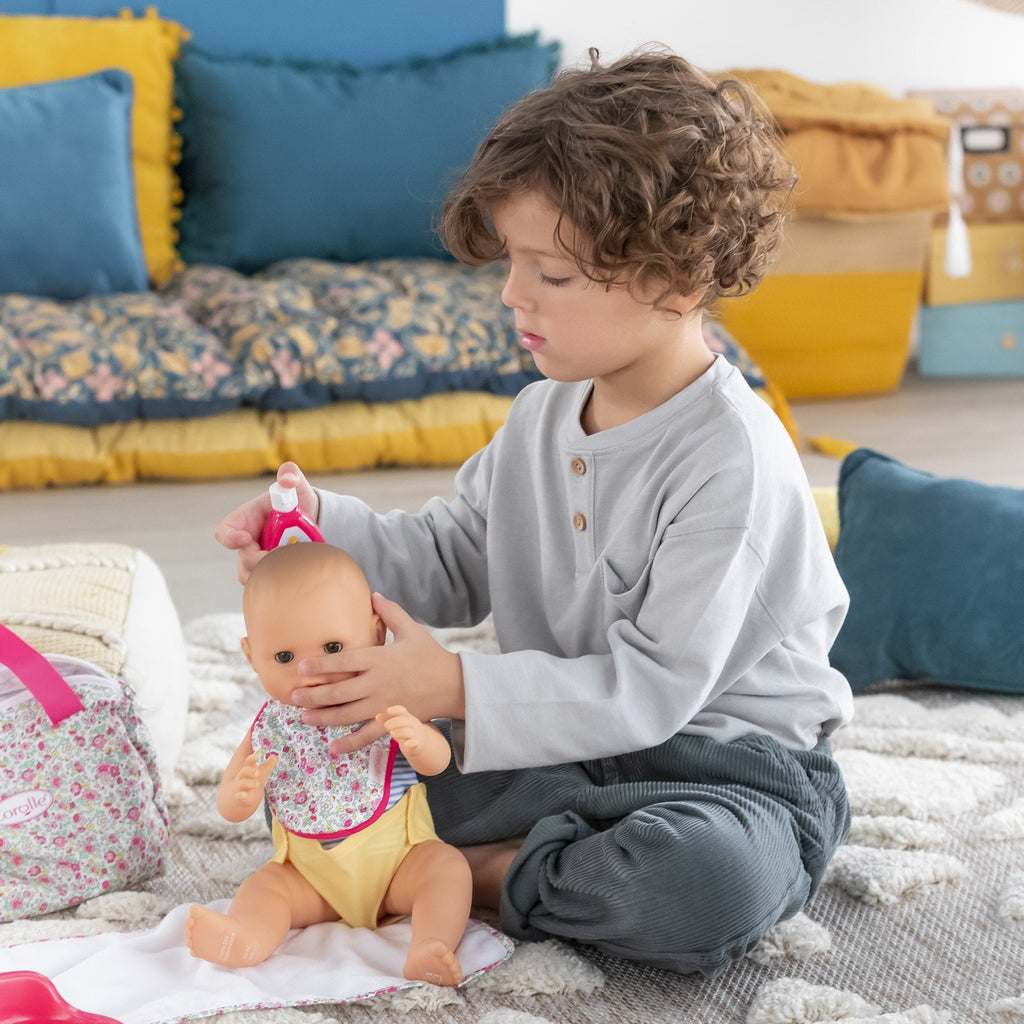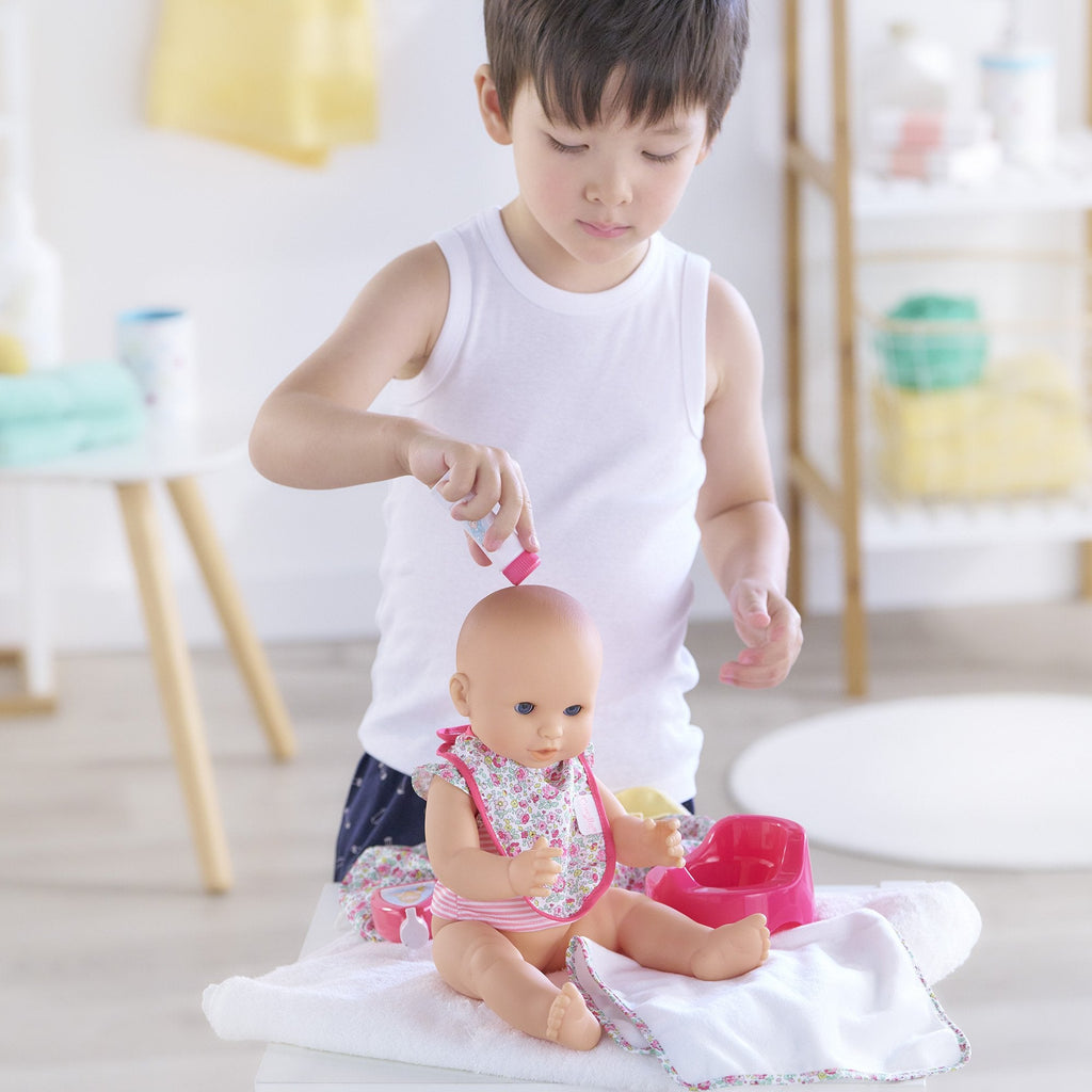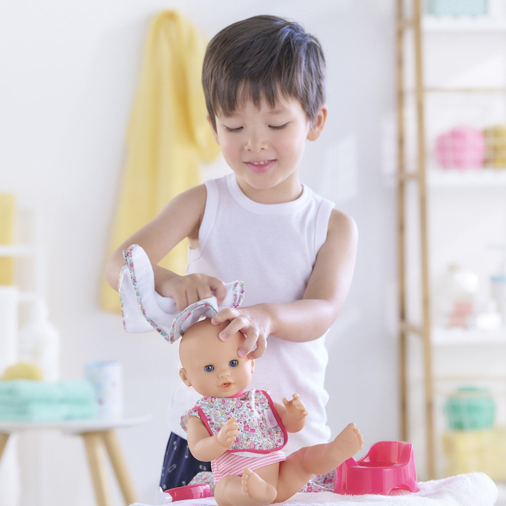 - Contenido del paquete: Spun poly bag & bib; velour towel/blanket; cloth diaper: 100% polyester. ABS accessories; PVC and polypropylene