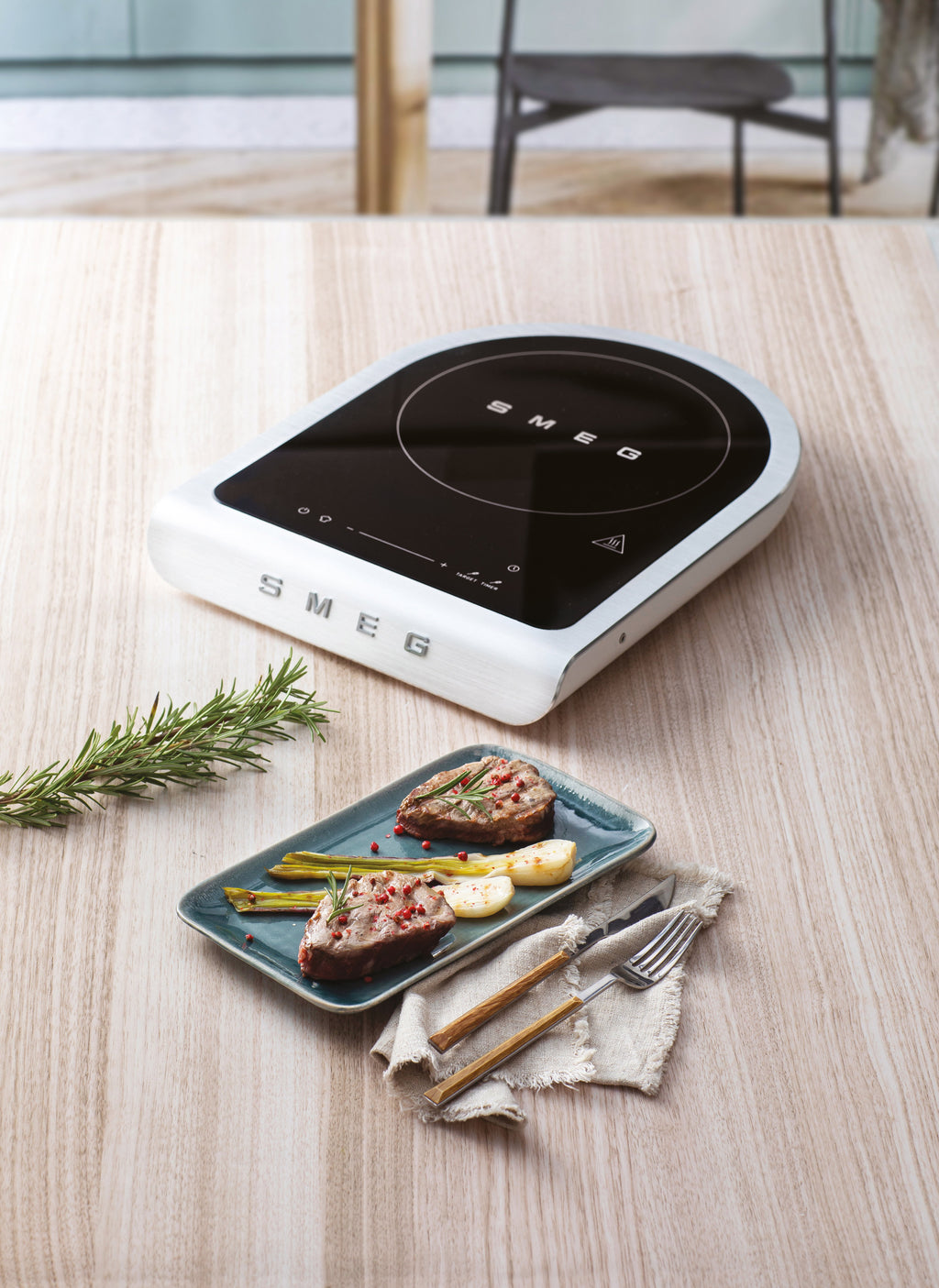 Smeg PIC01WHMEU, Negro, Acero inoxidable, Blanco, Encimera, Con placa de inducción, Vidrio y cerámica, 1 zona(s), 1 zona(s)