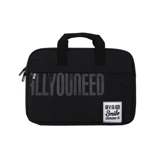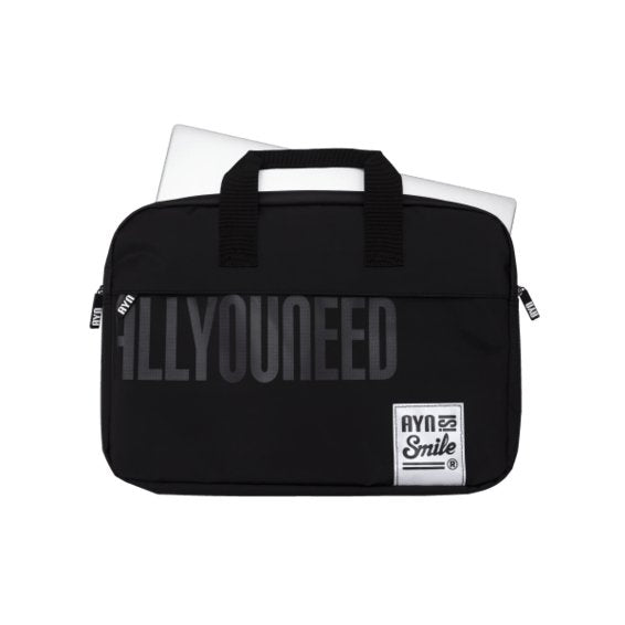 - Exterior de acabado mate de tacto suave con letras en contraste del mismo color que el maletín.