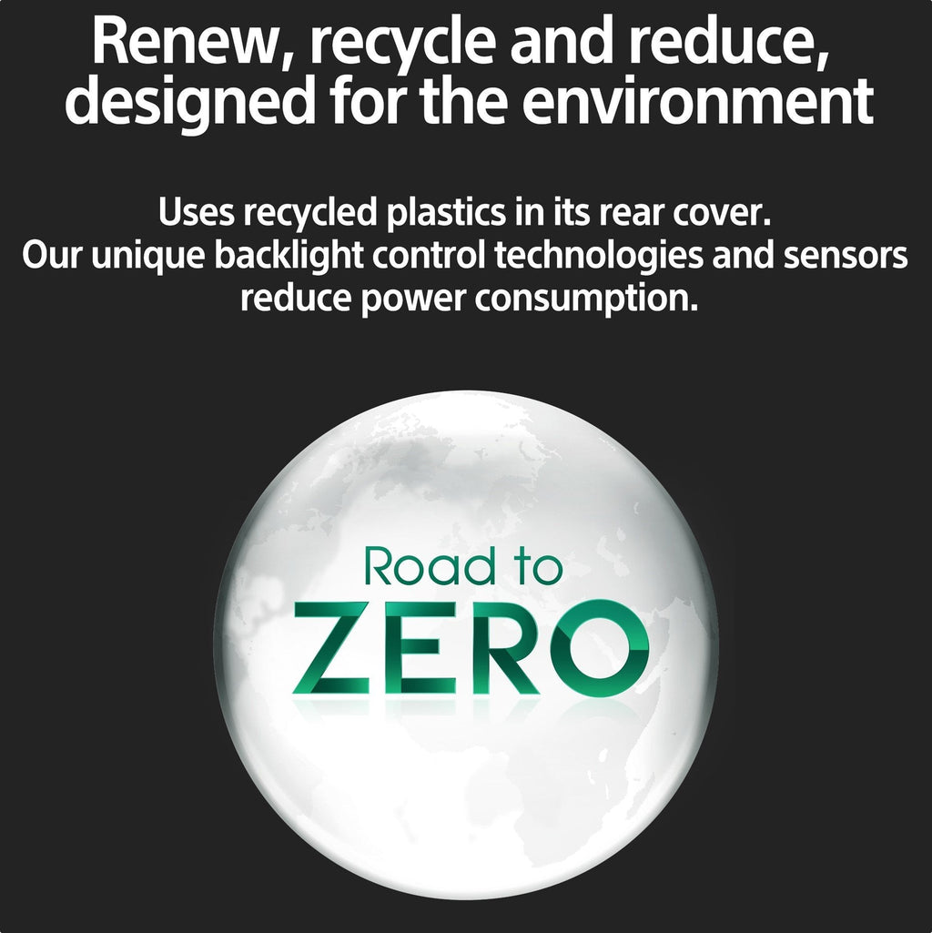Los TV BRAVIA XR ofrecen experiencias envolventes sin olvidarse del medioambiente. Nos comprometemos a utilizar menos plástico en los TV y embalajes. El A90K usa SORPLAS™ de Sony con reciclaje de hasta el 85 % en la cubierta trasera. Las tecnologías de control de la retroiluminación, BRAVIA CAM y los sensores ofrecen una imagen de alta calidad y reducen el consumo de energía.