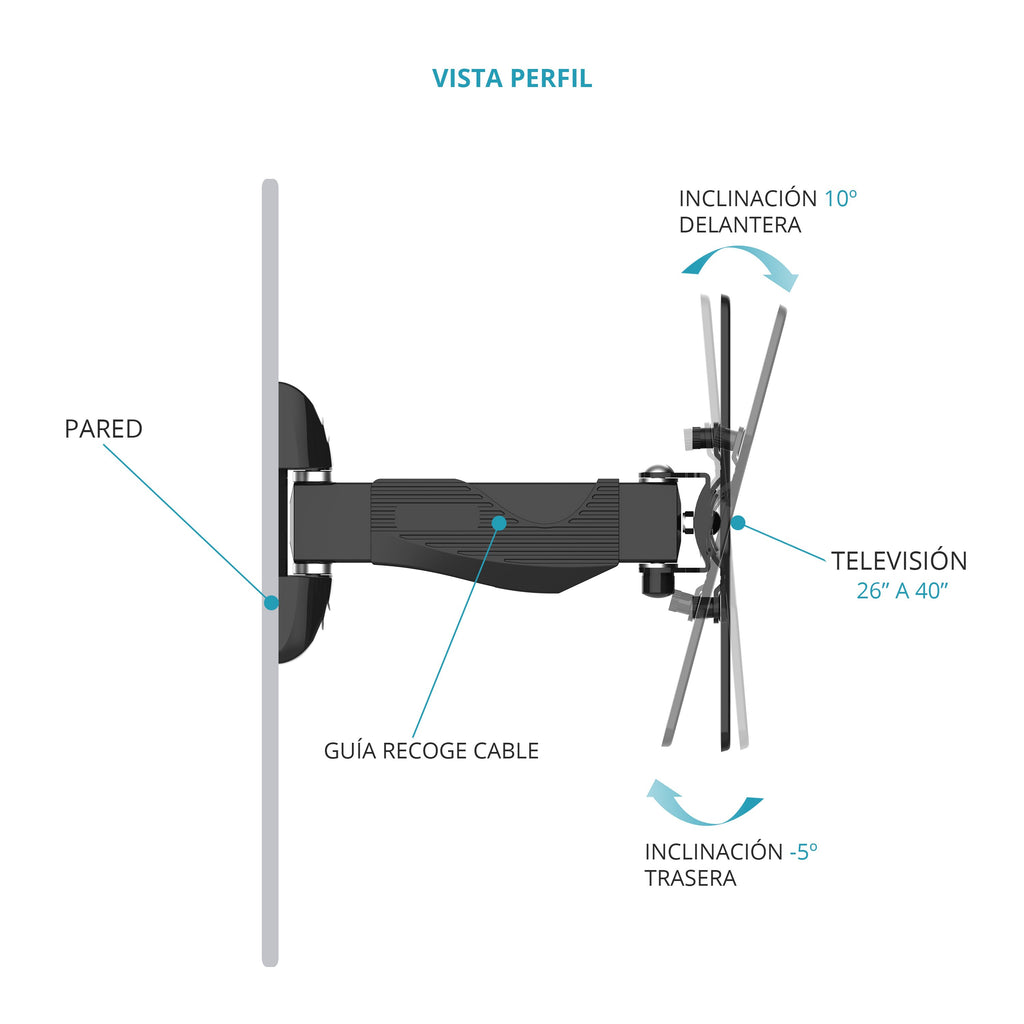 Apropiado para colgar pantallas de monitores o televisores de 26″ a 45″.