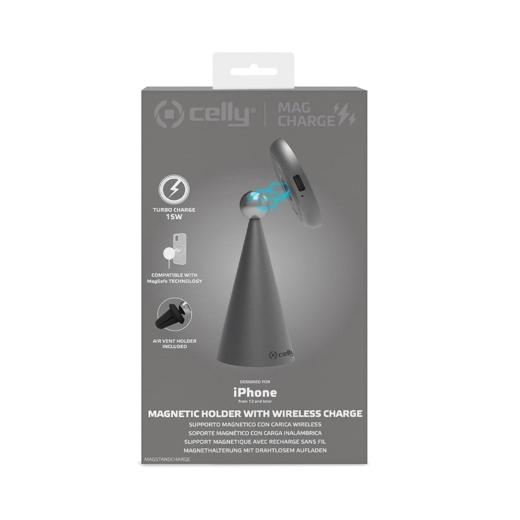 Celly MAGSTANDCHARGE cargador de dispositivo móvil Smartphone Plata USB Cargador inalámbrico Interior