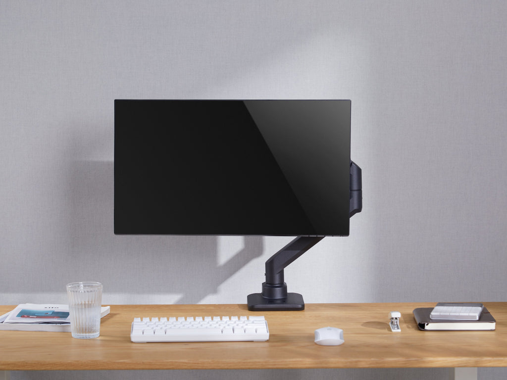 La instalación es sencilla y el soporte es compatible con una amplia gama de superficies de escritorio. Su estructura resistente garantiza un rendimiento y una durabilidad duraderos. Además, el sistema de gestión de cables integrado ayuda a mantener ordenado el espacio de trabajo organizando y ocultando los cables."