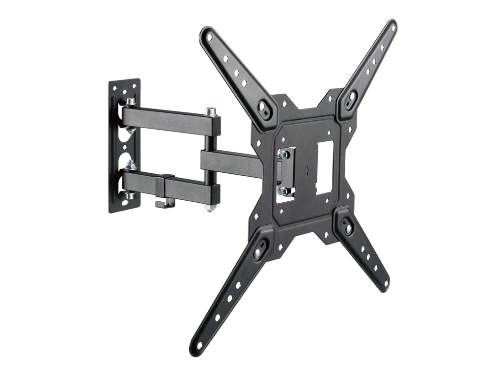 "Soporte de pared para TV de movimiento completo Equip 650413 de 23 a 55 pulgadas. Este versátil soporte está diseñado para adaptarse a televisores de 23 a 55 pulgadas, ofreciendo una solución flexible para sus necesidades de visualización. Las capacidades de movimiento completo le permiten girar, inclinar y extender su televisor, asegurando el ángulo perfecto y reduciendo el deslumbramiento para una experiencia de visualización óptima desde cualquier asiento de la habitación.
