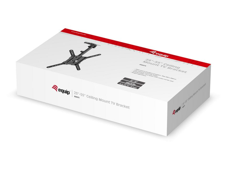 "El soporte de TV para montaje en techo Equip 650375 23""-55"" es una solución versátil y práctica para montar su televisor en el techo. Este soporte está diseñado para adaptarse a televisores con tamaños de pantalla que van desde 23 pulgadas a 55 pulgadas, ofreciendo flexibilidad para diversas configuraciones de visualización.