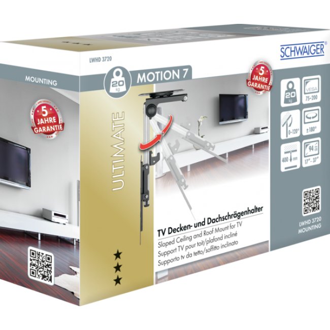 Schwaiger LWHD3720 513, 75 x 75 mm, 200 x 200 mm, 0 - 120°, 90 - -90°, Acero, Negro