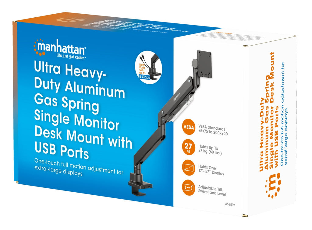 Manhattan 462594, Pinza/Atornillado, 27 kg, 43,2 cm (17"), 144,8 cm (57"), 200 x 200 mm, Negro