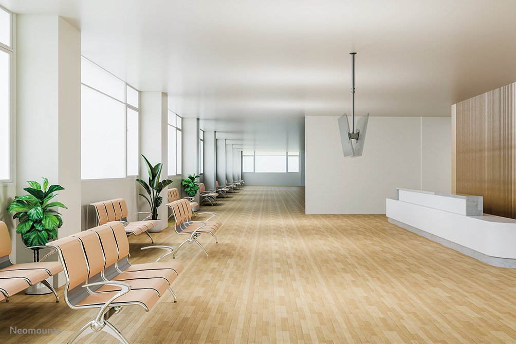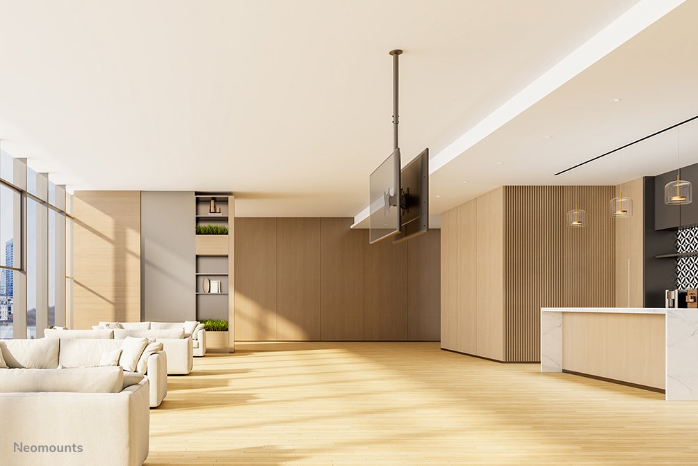 El Neomounts CL35-340BL22 es un soporte de techo de movimiento completo para dos pantallas planas de hasta 43". La tecnología única de inclinación (25°) y giro (360°) permite que el soporte se ajuste al ángulo de visión óptimo. Dispone de ajuste de nivel para una instalación perfecta.