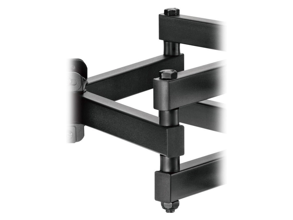 El soporte de TV de movimiento completo se adapta a la mayoría de los televisores de pantalla plana de hasta 40 kg. El ajuste de movimiento completo permite la máxima flexibilidad al nivelar el televisor para una visualización óptima desde cualquier asiento de la habitación."