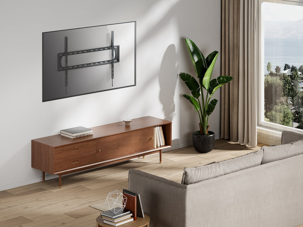 El equip® 650338 It's affordable Heavy-Duty TV Wall Mount es una solución razonable. Una estructura de refuerzo nivela la capacidad de peso hasta 120 kg para sostener firmemente televisores de 60"~120". El amplio espacio en el centro es perfecto para instalar la toma de corriente y ocultar todos los cables desordenados. Un cierre de resorte de liberación rápida permite retirar el televisor de forma rápida y sencilla, y sólo se tarda unos segundos en instalarlo.