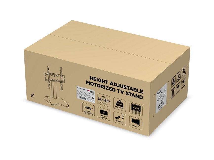 "El soporte de sobremesa motorizado equip® 650610 ajustable en altura para TV/LCD es un producto compacto pero robusto que garantiza una instalación fiable de su monitor de TV.