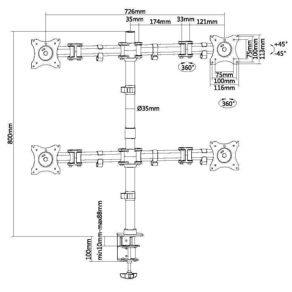 Ideal para multitarea, juegos o trabajo profesional, este soporte maximiza el espacio del escritorio al tiempo que garantiza la estabilidad gracias a su robusto diseño. La gestión de cables integrada mantiene los cables ordenados y reduce el desorden. Ya sea en una oficina, en un puesto de trabajo doméstico o en una instalación de ocio, el soporte de sobremesa para cuatro monitores mejora la inmersión visual y la eficacia multitarea. Es un accesorio valioso para quienes buscan una disposición de monitores racionalizada y flexible para satisfacer sus diversas necesidades informáticas."