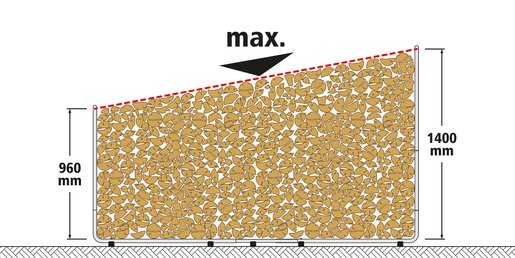 - Rango de longitudes de los troncos de leña: 25 - 50 cm