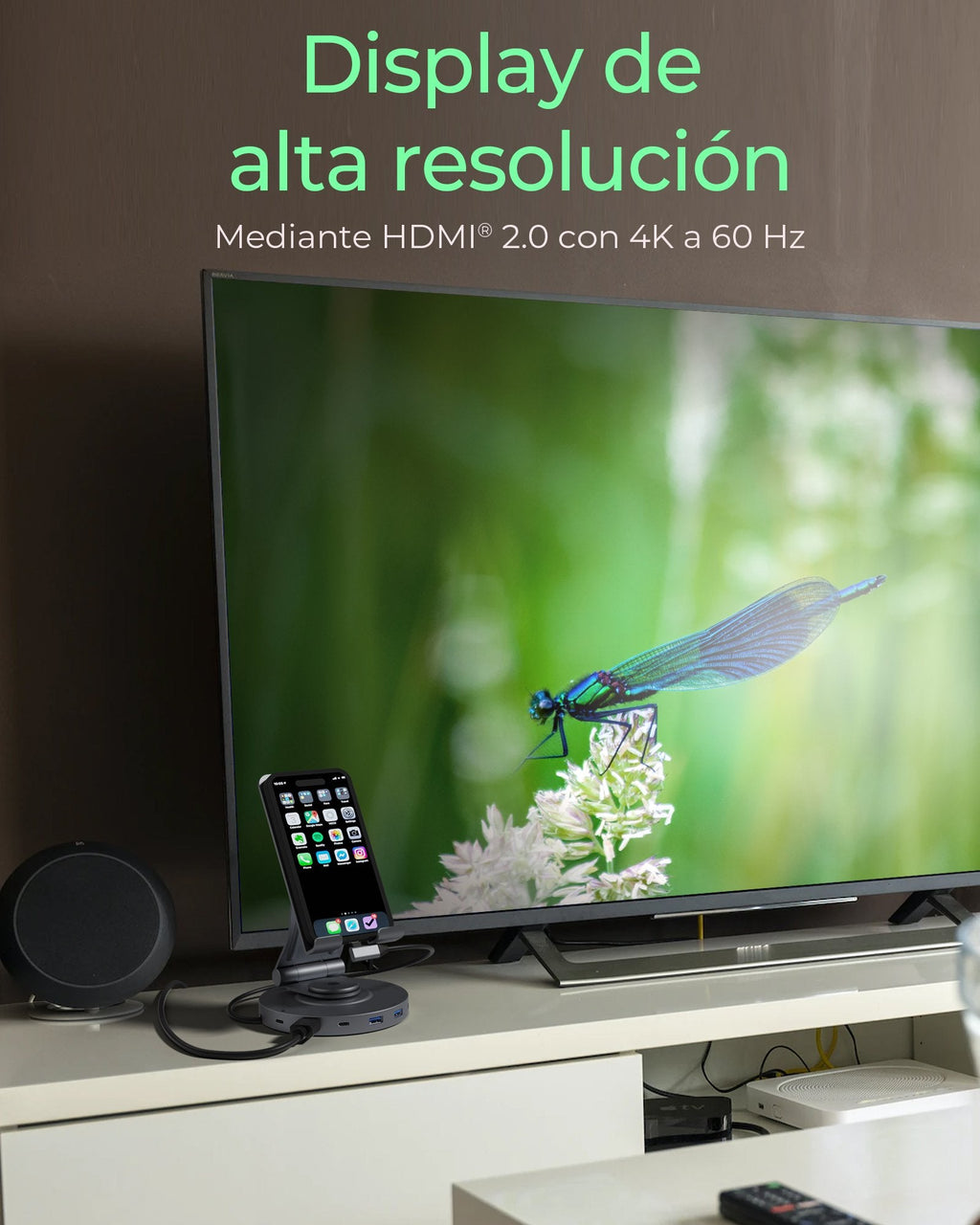 - HDMI Concentrador USB Salida de audio: 3,5 mm