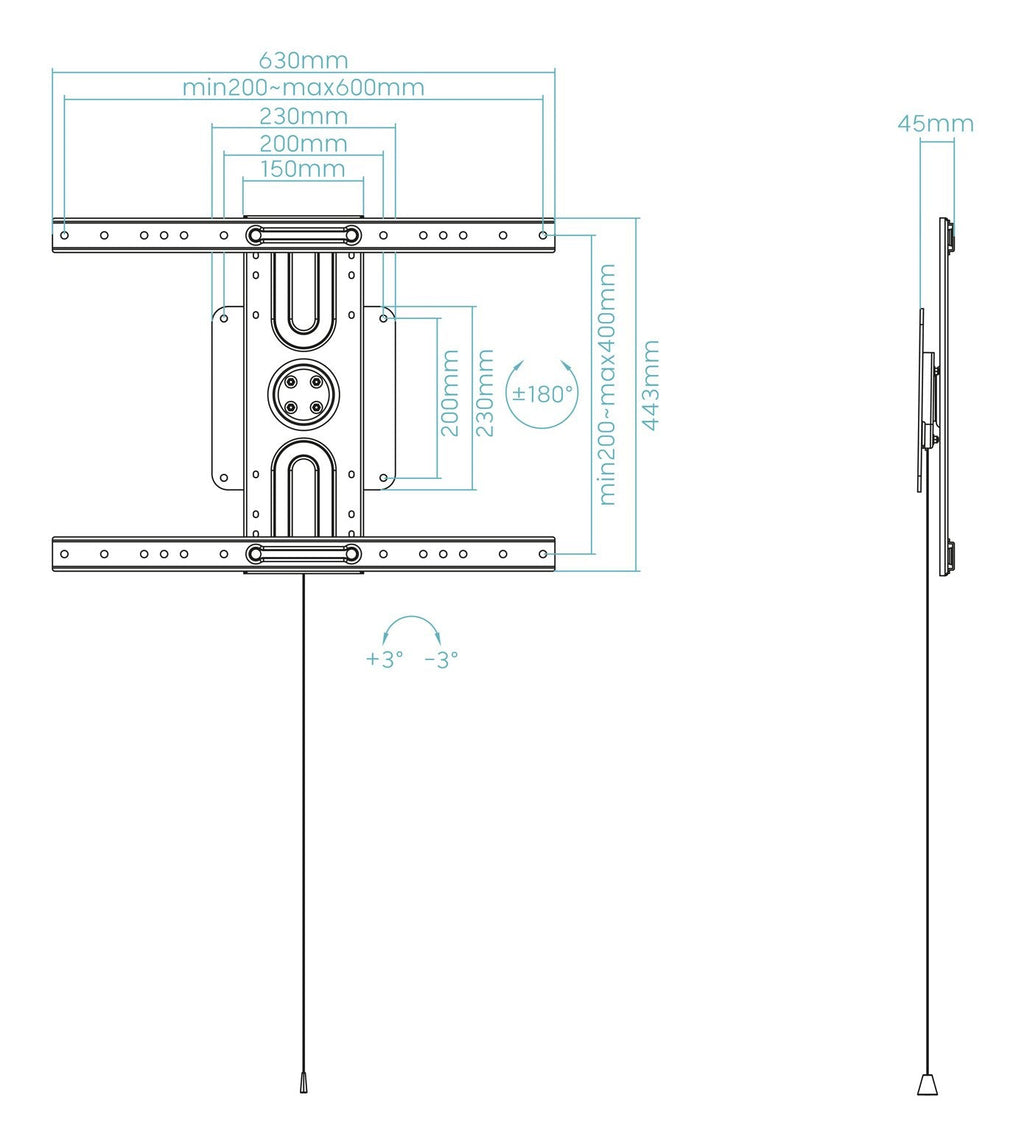 - Compatibilidad con interfaz de montaje (min): 200 x 200 mm Compatibilidad con interfaz de montaje (max): 600 x 400 mm