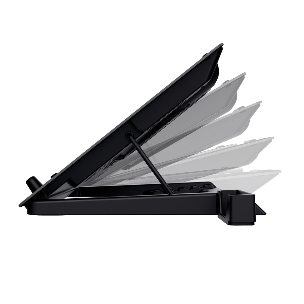 El resistente diseño de aluminio del pedestal se adapta a todos los portátiles de hasta 17,3". Gracias a sus 5 ventiladores, el pedestal consigue refrigerar incluso los portátiles de mayor tamaño. Mantén refrigerado el portátil para conseguir el mayor rendimiento posible.