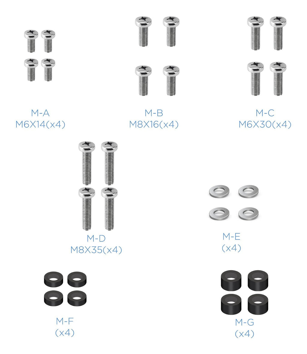 - Rango de ajuste de altura del soporte: 1115mm / 1165mm / 1215mm / 1265mm / 1315mm / 1365mm / 1415 mm