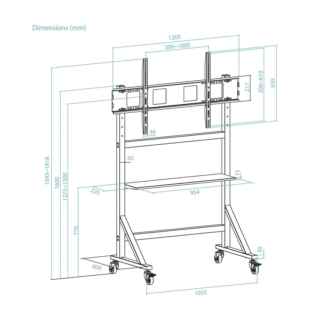 Creado para las grandes ligas. Gracias a su sólida estructura podrás instalar tu pantalla sin problemas y con tranquilidad. Además, dispone de ruedas para moverlo fácilmente y una bandeja para que puedas apoyar dispositivos a tu gusto. ¡Sólo con TooQ!