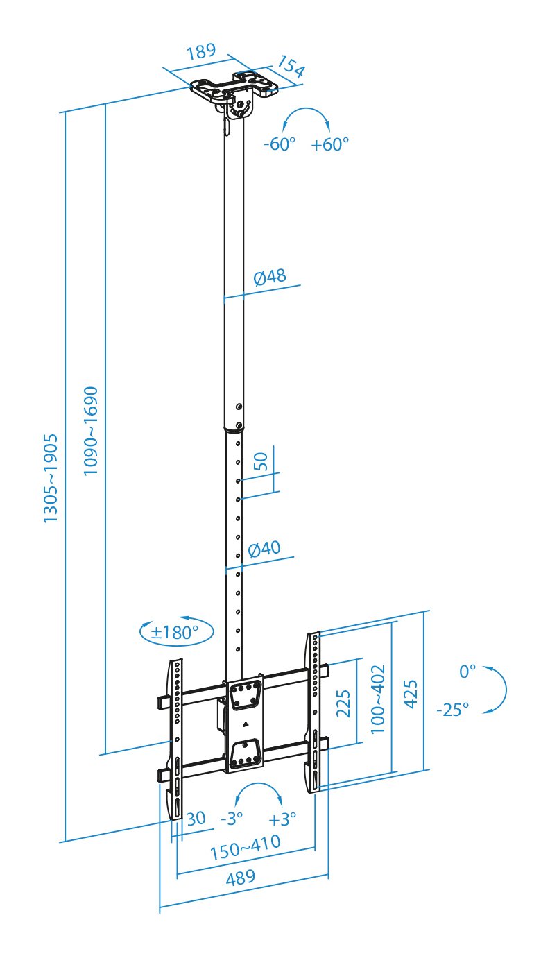 - Rango de ajustes de altura: 1090 - 1690 mm