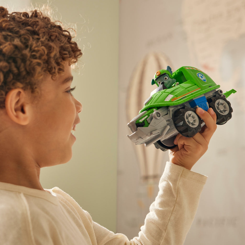 - ¡AVENTURA EN LA SELVA!: Únete a Rocky y a sus compañeros de Paw Patrol Jungle Pups (se venden por separado) en su increíble coche de rescate mientras se adentra en la peligrosa y misteriosa selva ¡rescata a los animales y ponlos a salvo del volcán y de otros peligros!