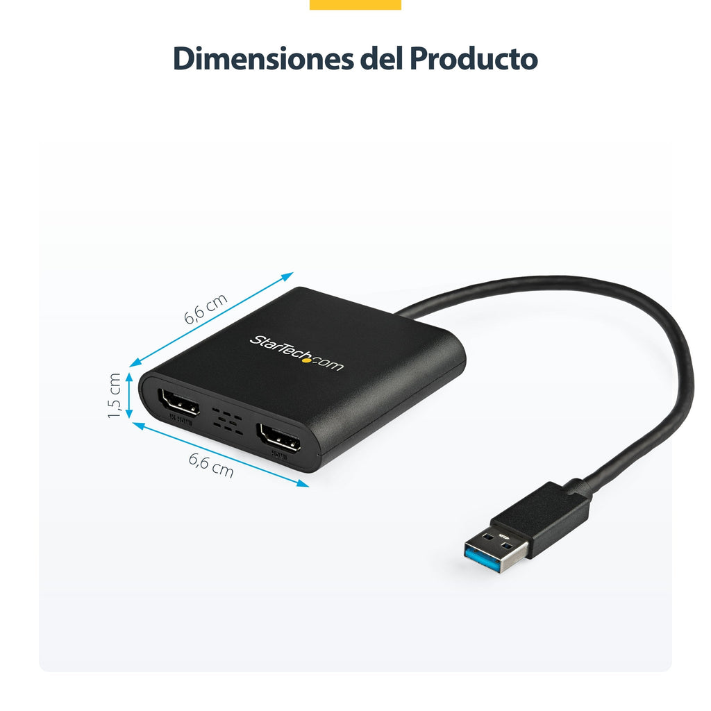 - RENDIMIENTO: El convertidor de USB a 5 Gbps a hub HDMI dual (1x USB-A macho a 2x HDMI hembra) ofrece 1x vídeo 4K a 30 Hz (UHD) y 1x vídeo 1080p a 60 Hz, audio de 2 canales (a través de HDMI), HDCP 1.4 y una longitud de cable de 25cm
