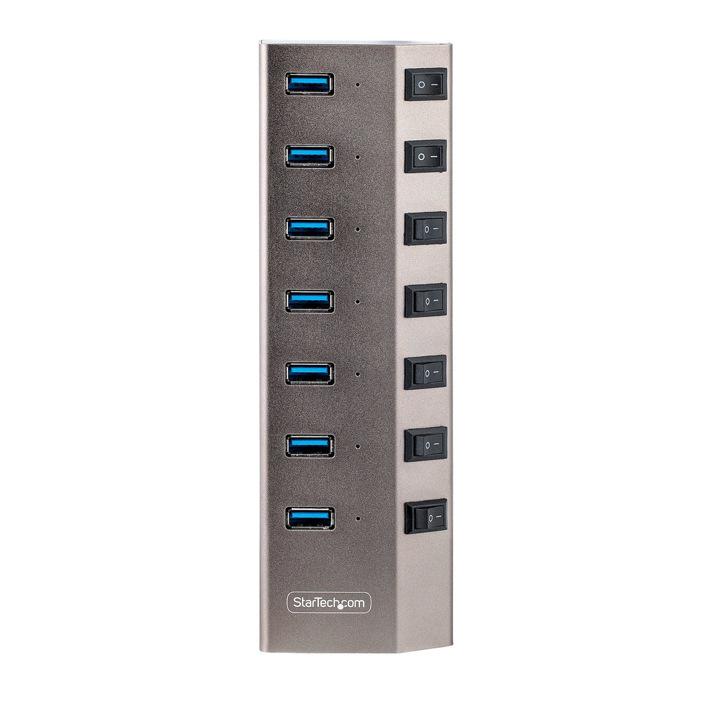 Hub USB de 7 puertos | Interruptores individuales de Encendido/Apagado para Puertos | USB 3.2 Gen 1 (5Gbps) | Cables USB-C y USB-A de 1m incluidos