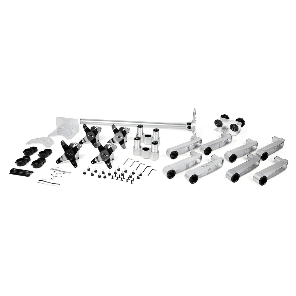 Cree un espacio de trabajo muy productivo y ergonómico, gracias a este soporte premium para cuatro monitores, cada uno de hasta 27".Cuatro brazos articulados para monitor con movimiento de doble giro, lo cual permite un amplio rango de movimientos contiguos. Su atractivo acabado de color plateado mejora la decoración de su espacio de trabajo.