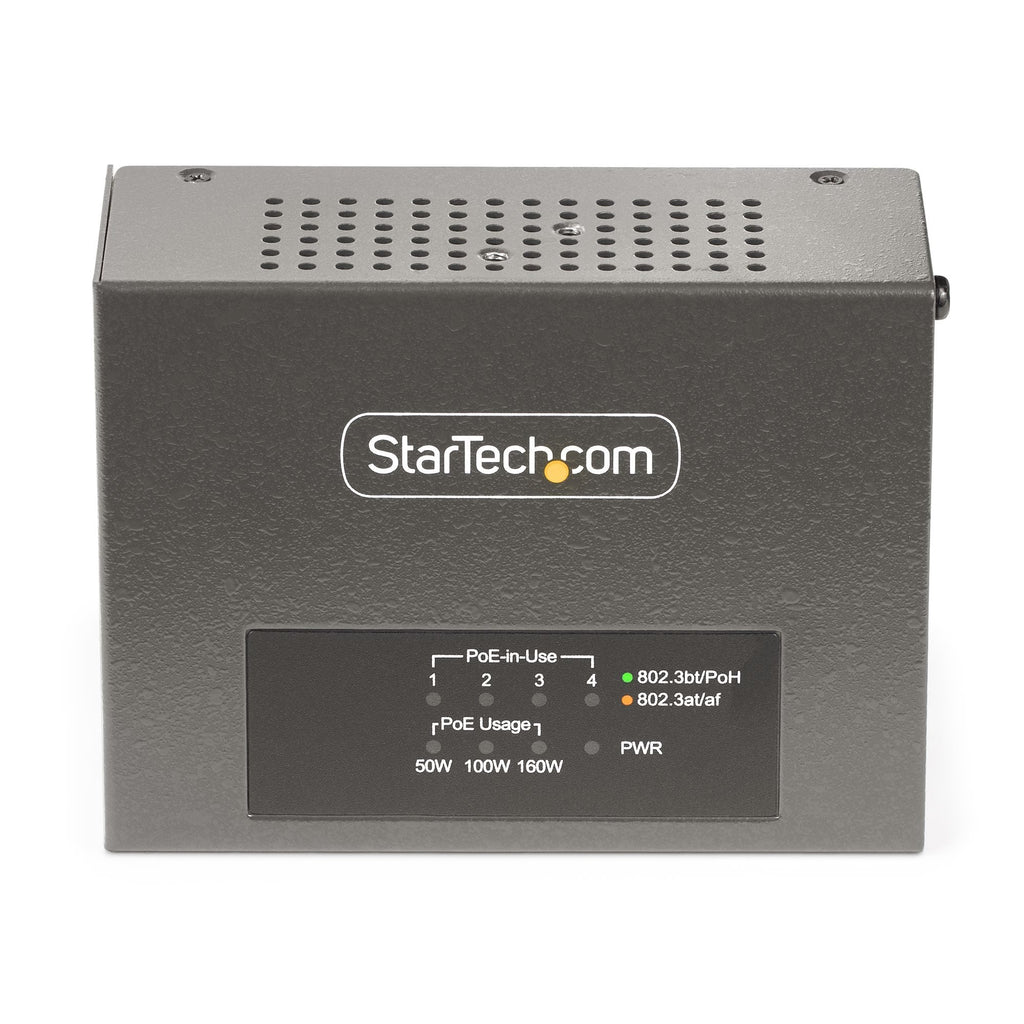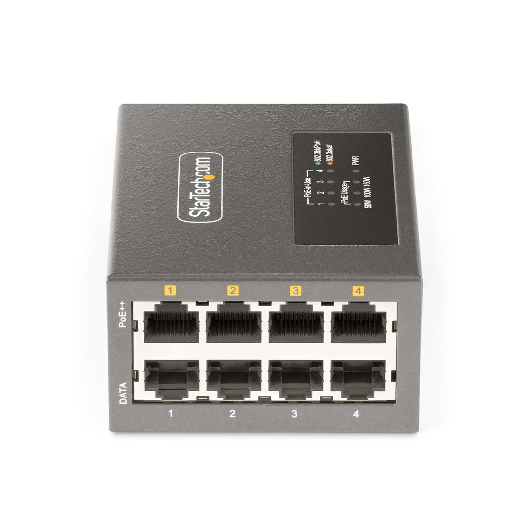 Startech.Com Switch Poe / Poe+ / Poe++ 802.3af/802.3at/802.3bt De 4 Puertos - 95w - 160w De Capacidad De Potencia - Inyector Power Over Ethernet 5g [Nbase-T] - Sin Gestionar - Para Carril Din / Pared