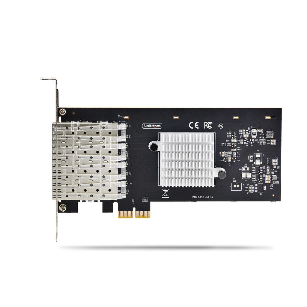 La tarjeta cuenta con cuatro ranuras SFP para módulos SFP intercambiables. Seleccione los módulos transceptores de fibra que mejor se adapten a las necesidades de red de la aplicación, en función de la distancia y el tipo de conector. StarTech.com ofrece una amplia variedad de módulos transceptores SFP para satisfacer muchas aplicaciones de red GbE.