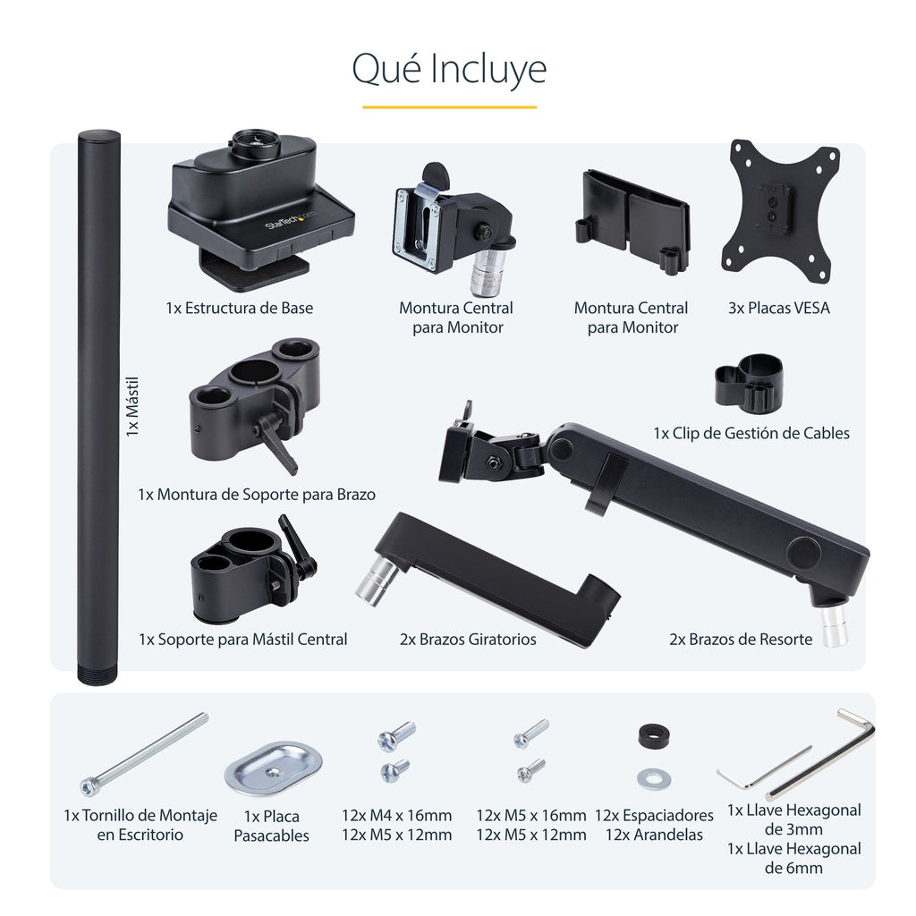 - ESPACIO DE TRABAJO ORGANIZADO: Aumente la productividad y la multitarea - Gestión de cables a lo largo de los brazos para mantener el cableado fuera de la vista - Un clip para cables montado ayuda a mantener una configuración ordenada