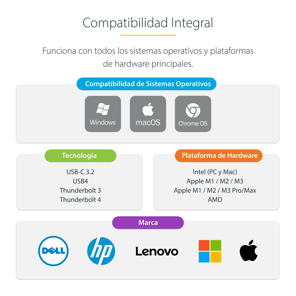 - COMPATIBILIDAD UNIVERSAL: Compatible con MacBooks M1/M2/M3, que no son nativamente capaces de manejar más de una pantalla externa - Funciona con Windows, macOS, ChromeOS y Ubuntu, permitiendo pantallas extendidas en portátiles USB-C y Thunderbolt 3 y 4