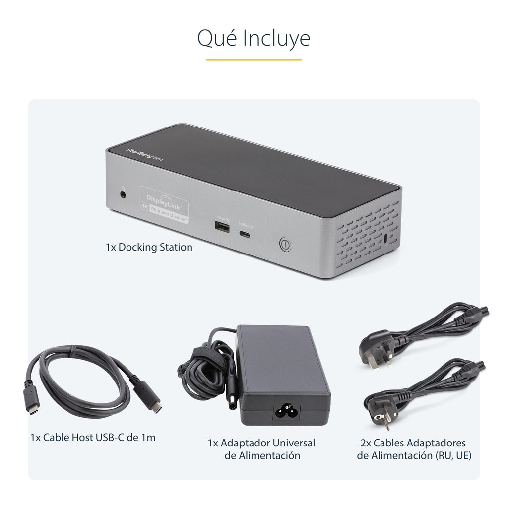 - AUMENTE LA PRODUCTIVIDAD: La base DisplayLink incluye 3 puertos USB-A a 5 Gbps (1 de carga rápida de 1,5 A), 1 puerto USB-C de hasta 10 Gbps (carga de smartphones/tablets de 15 W y 3A), Ethernet Gigabit (PXE Boot & WoL) y una toma de audio TRRS de 3,5 mm