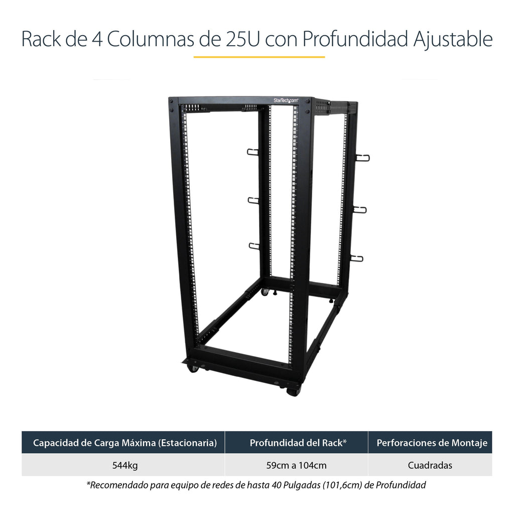 - PROFUNDIDAD AJUSTABLE: Rack abierto para servidores 25U de 4 columnas con 4 carriles verticales y profundidad de montaje ajustable de 22" a 40" (de 56,0 cm a 101,7 cm) - Compatible con varios tipos de equipos Informáticos - Cumple con EIA/ECA-310-E