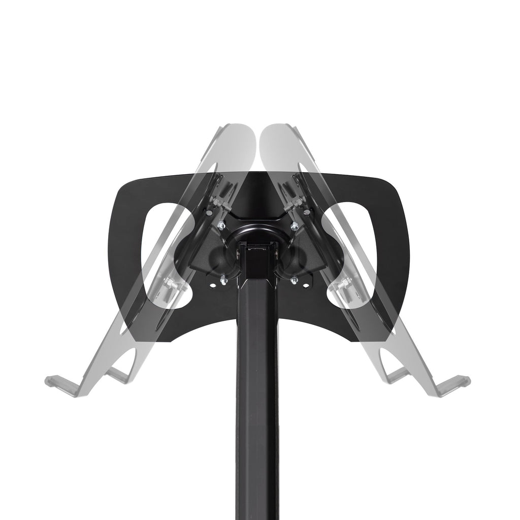 El soporte VESA ofrece un rango completo de movimiento que se ajustará a sus necesidades de configuración y ergonomía, Cuando lo utilice como soporte para portátil, su portátil necesitará seguridad adicional en ángulos más pronunciados (no incluida).