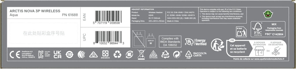 Steelseries Arctis Nova 3P, Inalámbrico, Música/uso diario, 20 - 22000 Hz, 260 g, Auriculares, Color aguamarina