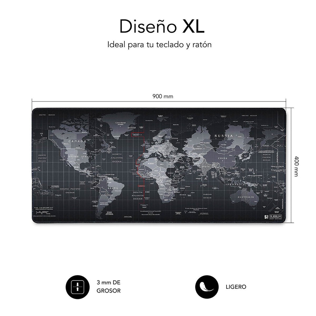 SUBBLIM Mousepad World XL Alfombrilla de ratón para juegos Negro