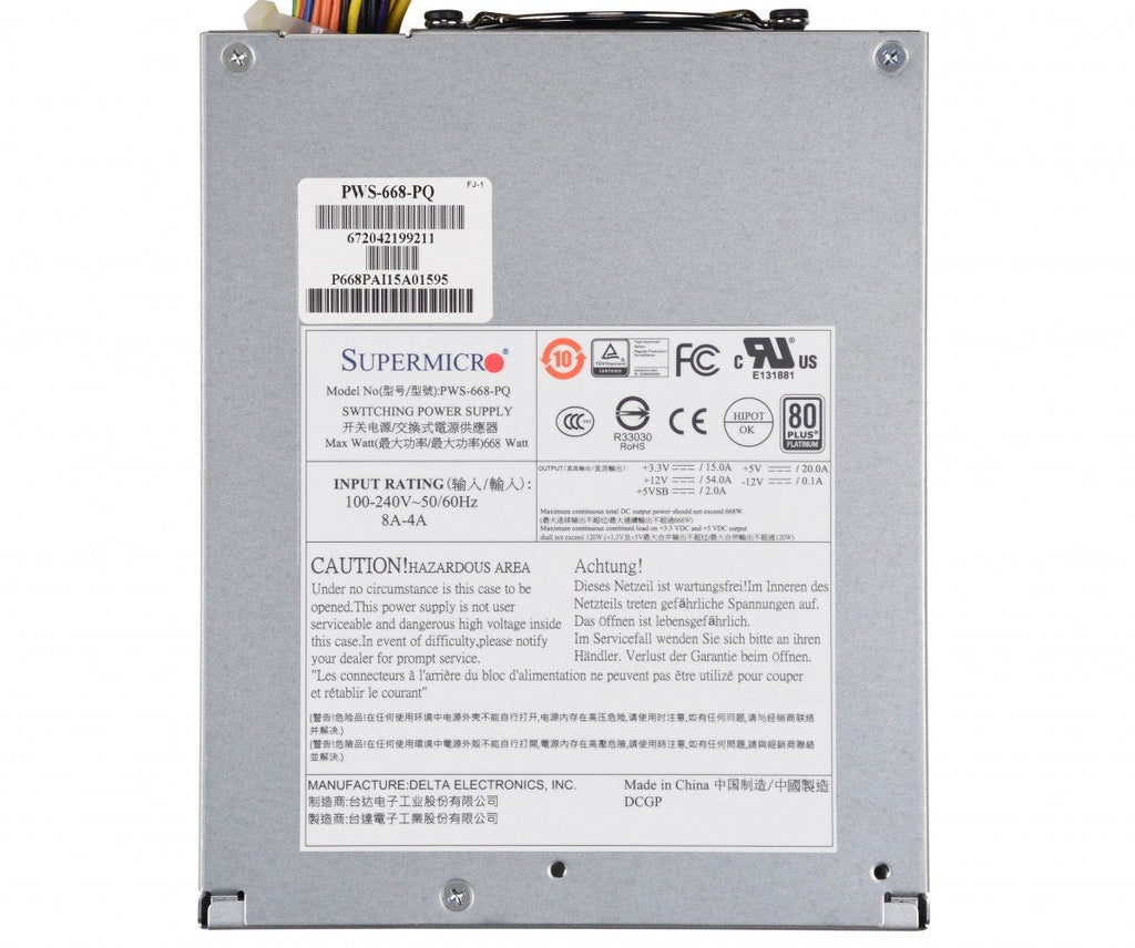 Supermicro PWS-668-PQ, 668 W, 100 - 240 V, 50 - 60 Hz, 8 A, Activo, 15 A