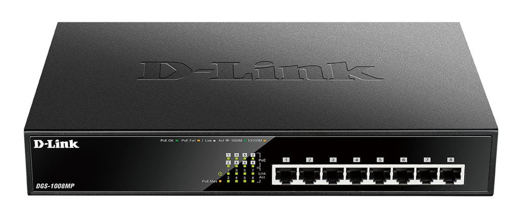 D-Link DGS-1008MP switch No administrado Gigabit Ethernet (10/100/1000) Energía sobre Ethernet (PoE) 1U Negro