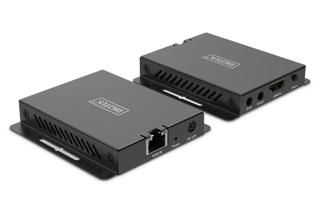 El kit Extensor DIGITUS HDMI permite la transmisión de señales HDMI a una distancia de hasta 30 m (4K/120Hz, 4:4:4) mediante cable CAT 6 o superior. La gama de prestaciones comprende también una transmisión IR bidireccional que permite el control flexible de la fuente de señal. También es apto para el montaje en la pared y ofrece así unas posibilidades de instalación flexibles.