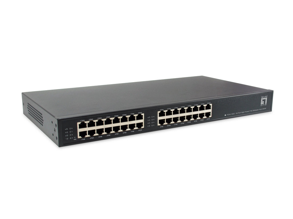 LevelOne POH-1620, Ethernet rápido, Gigabit Ethernet, 10,100,1000 Mbit/s, IEEE 802.3, IEEE 802.3ab, IEEE 802.3af, IEEE 802.3u, Negro, 1U, Enlace, PoE, Poder
