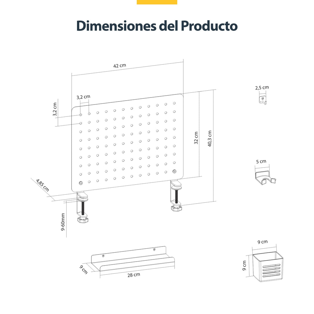 Tablero Perforado De Sobremesa Con Abrazadera - Organizador
