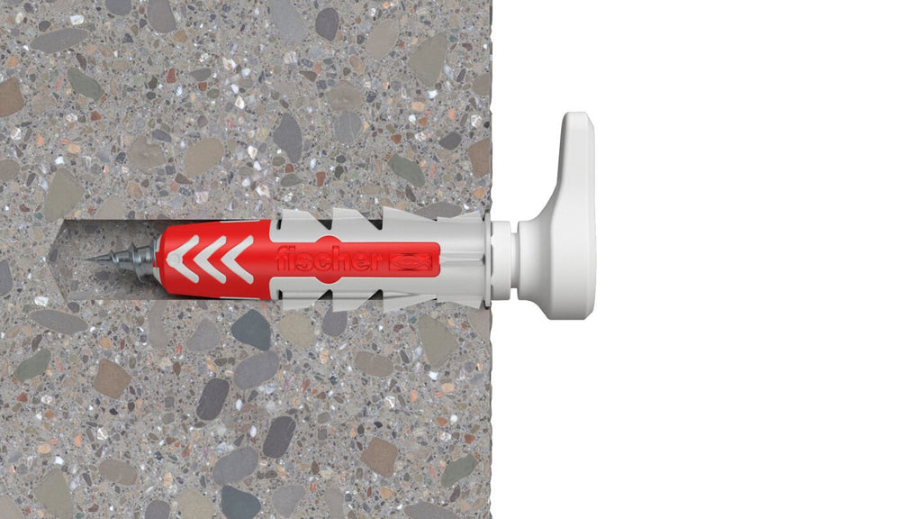 Fischer 564168, Juego de enchufes de pared y ganchos de tornillo, Hormigón aireado autoclavado, Ladrillo, Concreto, Placa de pladur, Cartón yeso, Plástico, Gris, Rojo, Blanco, Torx, TX20
