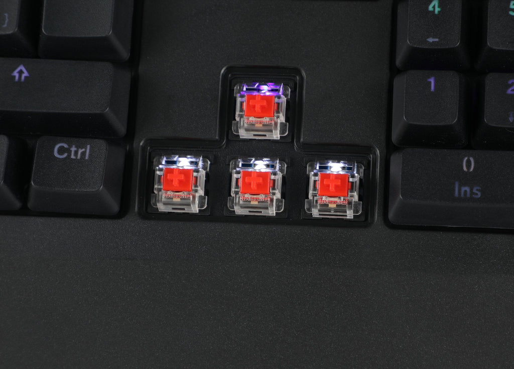 Dispone 105 teclas anti-ghosting y 10 efectos tipo arco iris, además de 6 modos de juego: FPS, Crossfire, Wow, RTS, Lol y Racing.