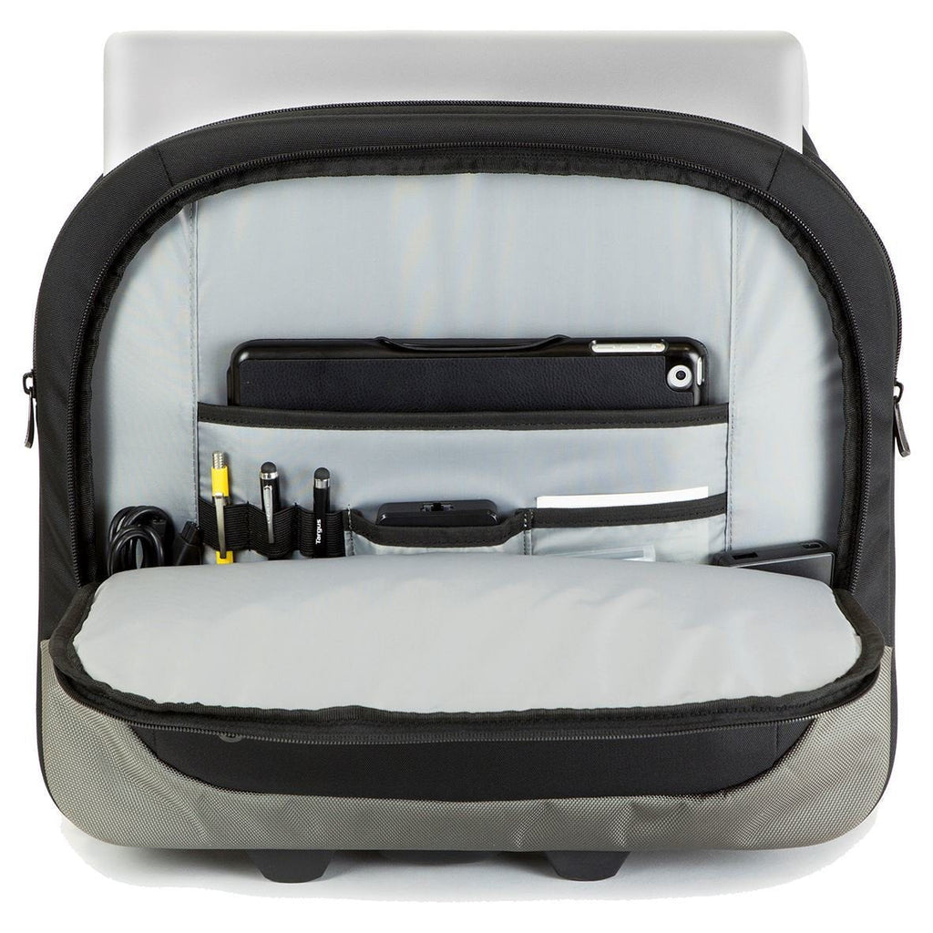 El maletín con ruedas City Gear para portátiles de hasta 17,3" de Targus es el compañero de viaje perfecto. Un maletín versátil de estilo desenfadado y capacidad bien aprovechada. El maletín con ruedas es una combinación eficaz para guardar el portátil y el equipaje gracias a sus compartimentos independientes para la ropa y para los dispositivos informáticos y otros accesorios. Diseñado para proteger y transportar portátiles y tablets de hasta 17,3", tiene un interior espacioso, proporcionando suficiente espacio para llevar una muda de ropa.