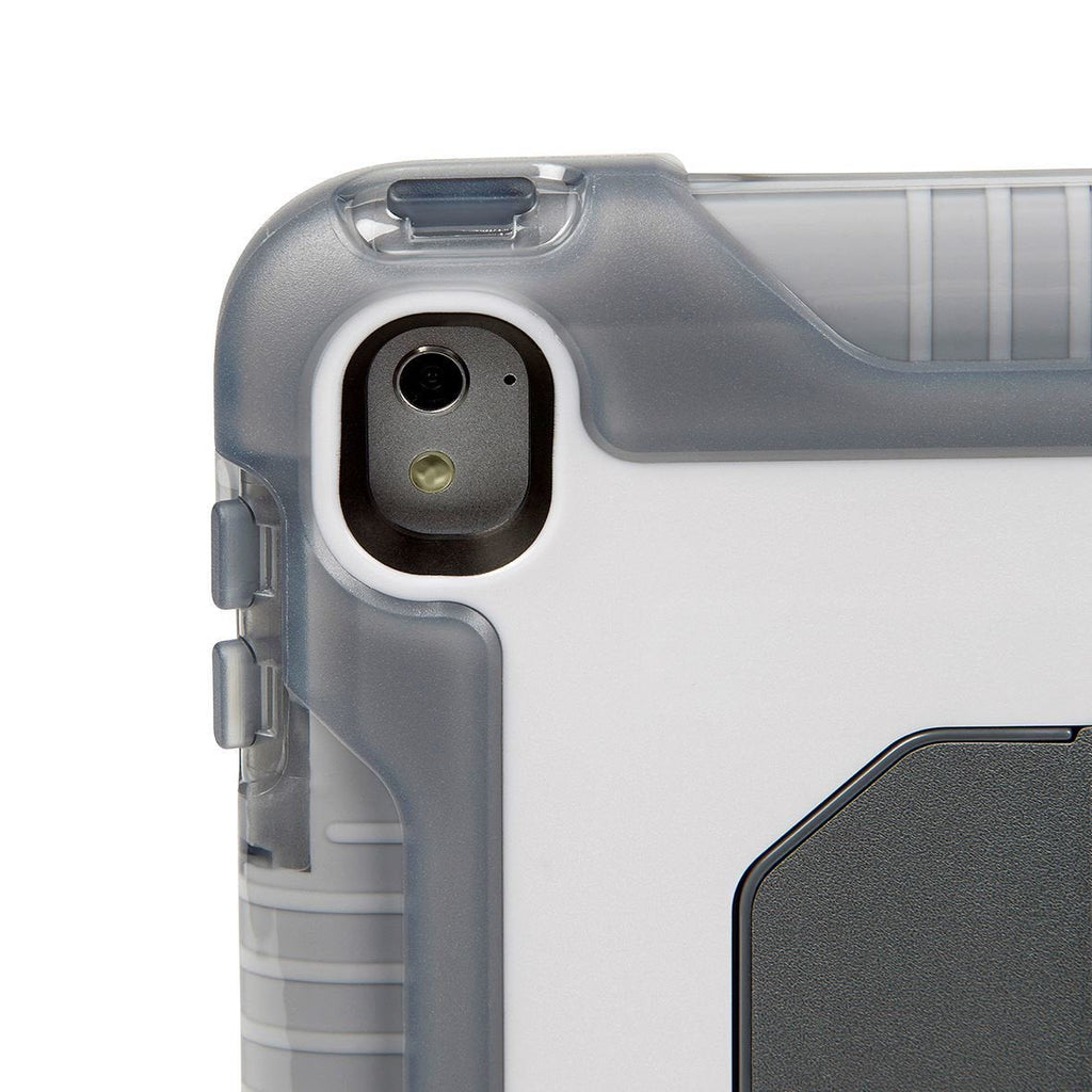 La funda SafePort® de Targus para el iPad (2017/2018), iPad Pro 9.7 y iPad Air 2 brinda una protección robusta para los entornos más exigentes. Tanto si tiene que trabajar en una obra o bien sufre el ajetreo diario de ir de una clase a otra, esta funda le ofrece la protección que necesita. Está fabricada con poliuretano termoplástico (TPU) moldeado, que ofrece una protección avanzada frente a las caídas repentinas y las condiciones ambientales más duras, mientras que un protector de pantalla integrado sin bordes protege el dispositivo justo donde es más vulnerable. Los altavoces cónicos integrados en la funda rodean los altavoces del dispositivo a fin de redirigir el sonido hacia el usuario. Para una mayor versatilidad, la funda incluye una peana deslizable integrada que permite visitar o teclear cómodamente en el dispositivo en formato horizontal o vertical, así como una cómoda asa de mano y una correa para el hombro extraíble.
