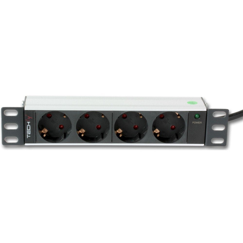 Techly I-CASE M10-4D unidad de distribución de energía (PDU) 4 salidas AC 1U Negro, Plata
